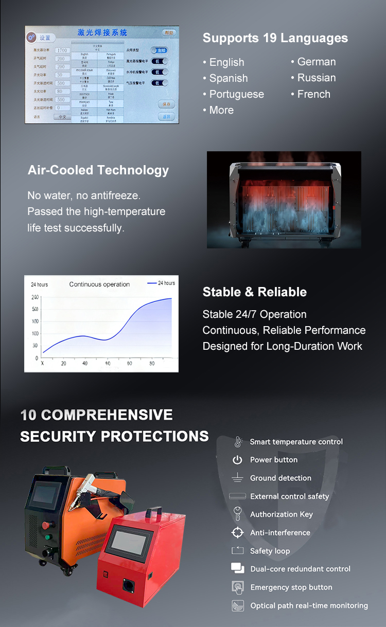 DerHUAWEI LASER Luftgekühltes tragbares 800-W-1200-W-Laserschweißgerät zum Mitnehmen für schnelle Werkstattarbeitenist für schnelles und effizientes Schweißen in hektischen Werkstattumgebungen konzipiert. Ausgestattet mit einem luftgekühlten System, leicht und tragbarHandlaserschweißgerätsorgt für stabile Leistung mit minimalen Ausfallzeiten, selbst bei längerem Gebrauch. Es ist ideal für kleine bis mittlere Schweißprojekte und erzeugt hochwertige Schweißnähte auf Edelstahl, Kohlenstoffstahl und Aluminium mit glatten Nähten und minimalem Wärmeverzug. Perfekt für schnelle Metallverarbeitungs-, Reparatur- und MontagearbeitenHUAWEI LASERLuftgekühltes tragbares 800-W-1200-W-Laserschweißgerät zum Mitnehmen für schnelle Werkstattarbeitenbietet zuverlässige, benutzerfreundliche Leistung für Profis, die ihre Arbeit schnell und effizient erledigen müssen.